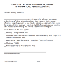 - The policyholder affirms that they are not required to maintain flood insurance for the insured property under any statute, regulation, or contract.