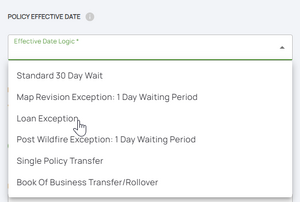 • Loan Exception: If this policy is being purchased to meet a lender requirement for a new purchase, loan closing, or the increasing, extending, or renewing of a loan, the policy will go into effect at the time of closing provided the application and premium are received in a timely manner.