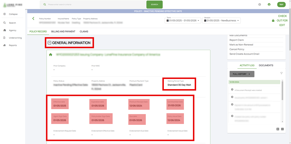 In Equinox, information about the policy Effective Date is found in the General Information section.