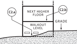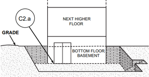 |The bottom floor is below ground level on all sides, and the area of egress is also below grade on all sides. This also applies to buildings with negative flow. | |The bottom floor is below ground level on all sides, and the area of egress is also below grade on all sides. This also applies to buildings with negative flow. | ||